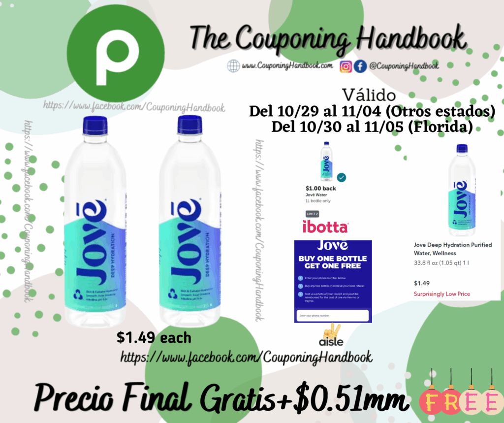 Compra 02 Jove Deep Hydration Purified Water, Wellness 33.8 fl ($1.49 each) ….; pagaremos $2.98 por los 02 productos.