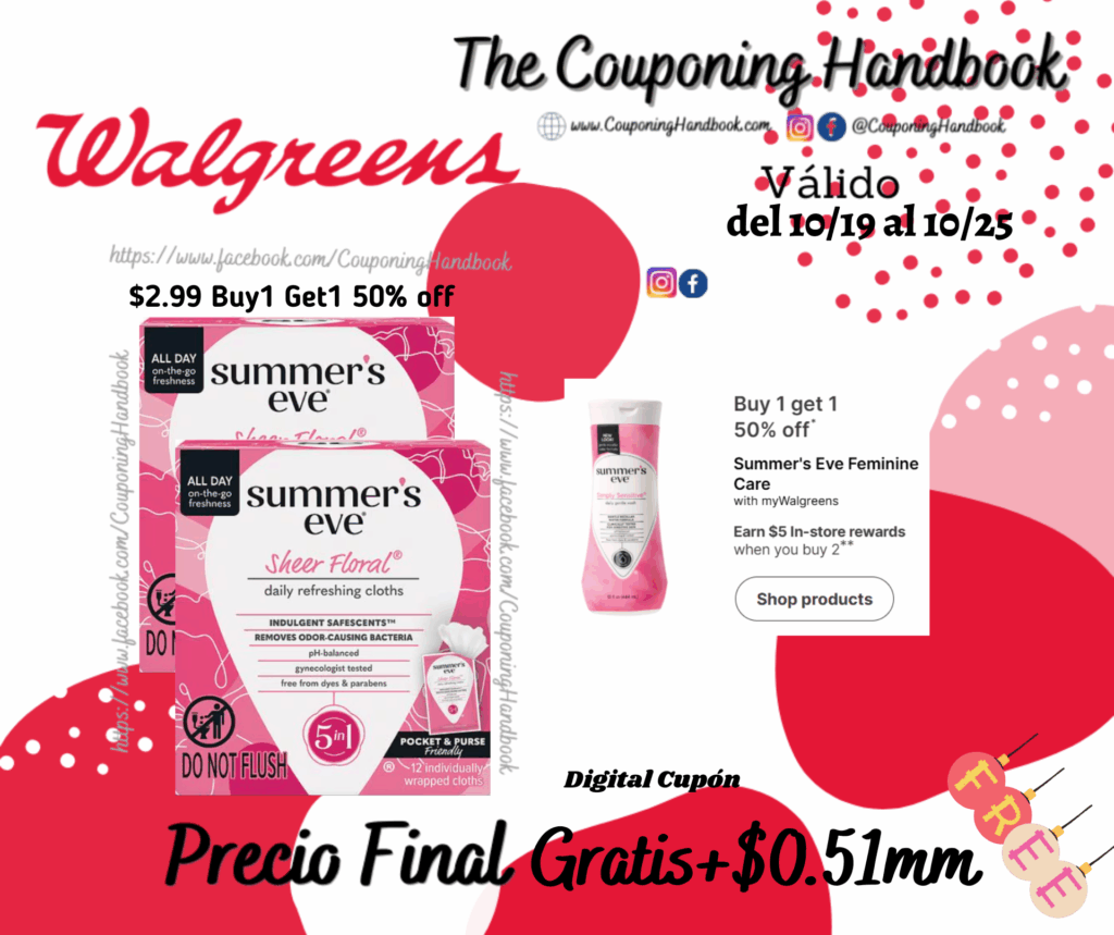 02 Summer’s Eve Feminine Wipes Sheer Floral, 12.0 ea Gratis por Mery Cardoso el octubre 21, 2025 con No hay comentarios WALGREENS Compra 02 Summer’s Eve Feminine Wipes Sheer Floral, 12.0 ea ($2.99 Buy1 Get1 50% off)….; pagarás $4.48 pero te devolverán $5 In-store rewards when you buy 2, quedando tu compra completamente Gratis!!! y con una ganancia de $0.51 Comparte:FacebookTwitter