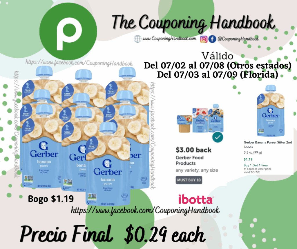 Compra 10 Gerber Banana Puree (Bogo $1.19)….; pagaremos $5.95 por los 10 productos.