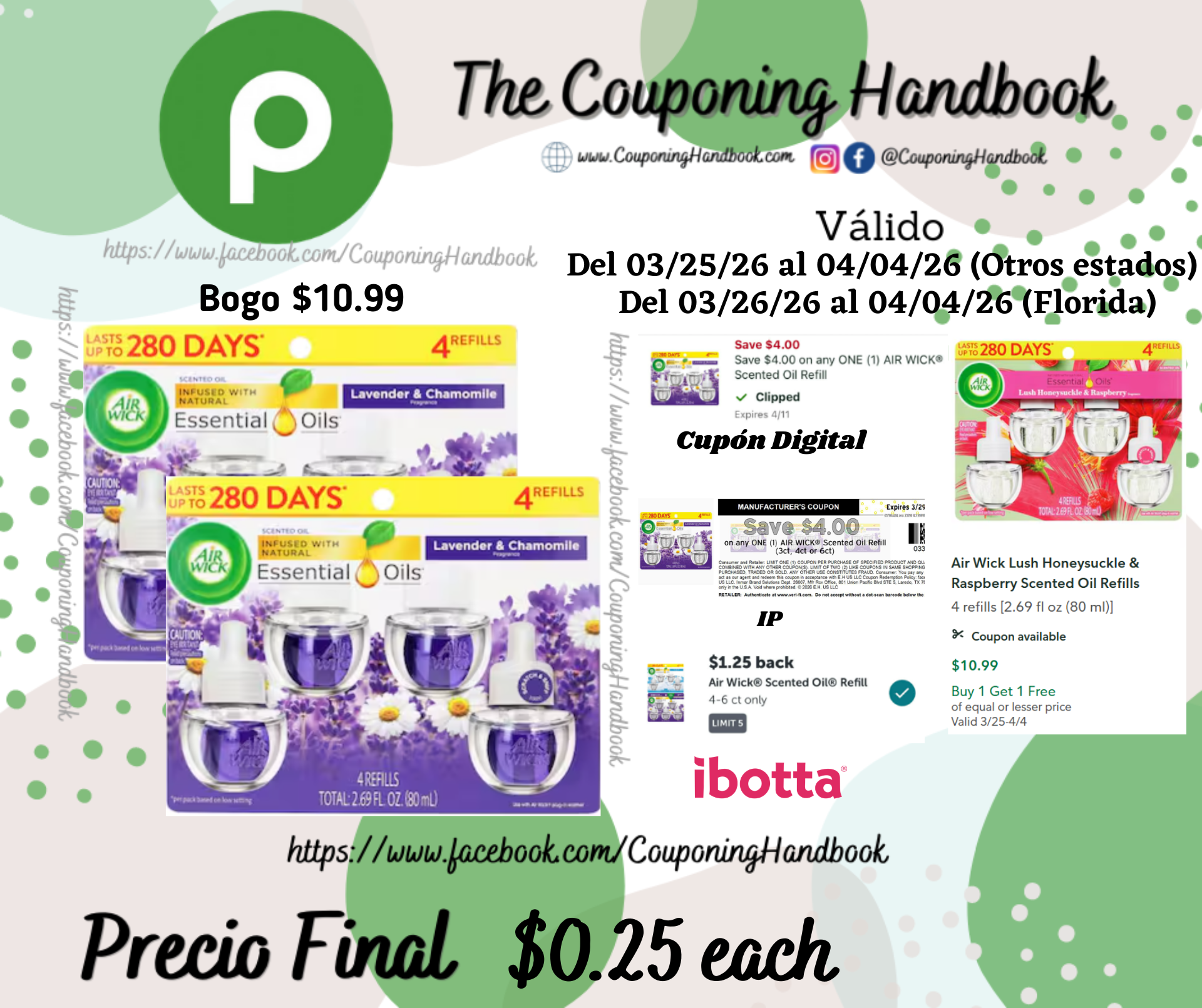 ✔️ $4/1 any AIR WICK® Scented Oil Refill.….((IPel cual lo puedes imprimir en el siguiente enlace 👉👉👉👉 (AirWick))