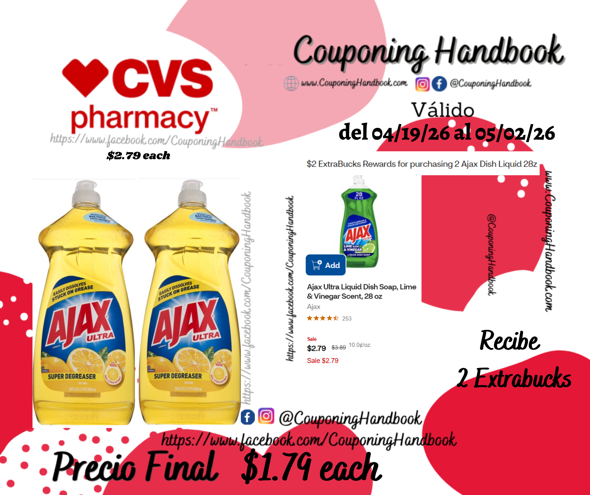 ✔️ 02 Ajax Ultra Liquid Dish Soap 28 oz ($2.79 each)