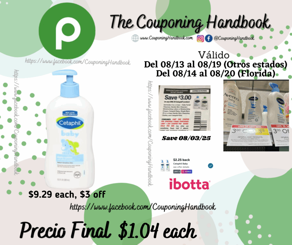 Compra 01 Cetaphil Baby Daily Lotion ($9.29 each, $3 off), entregamos el cupón manufacturero del Save de 08/03/25 de $3/1 any cetaphil products….; Pagaremos $3.29 por el producto.