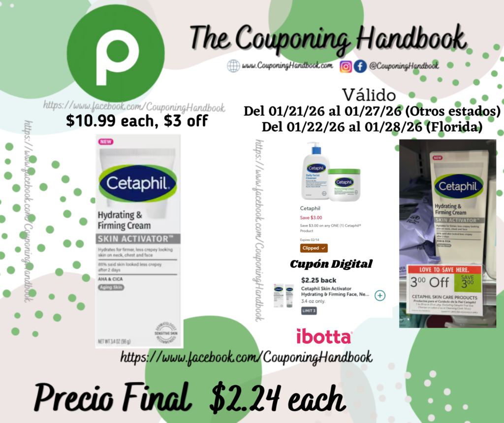 Compra 01 Cetaphil Skin Activator Hydrating & Firming Cream ($10.99 each, $3 off), clipeamos el cupón digital de $3/1 any Cetaphil® Product…., adicionalmente la tienda te descontará $3 automaticamente por el producto; pagaremos $4.99 por el producto.