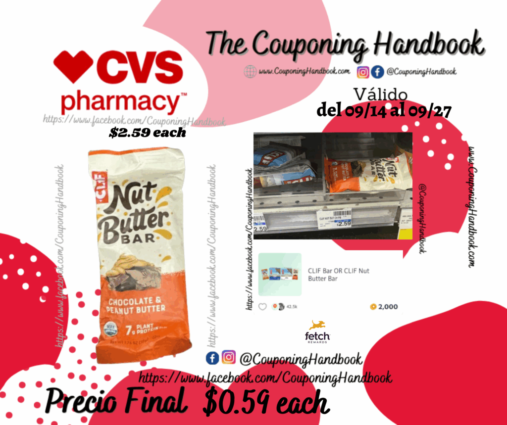 Compra 01 CLIF, Nut Butter Bar, Chocolate Peanut Butter, Filled Energy Bar, Non-GMO, USDA Organic ($2.59 each)…; pagaremos $2.59 por el producto.