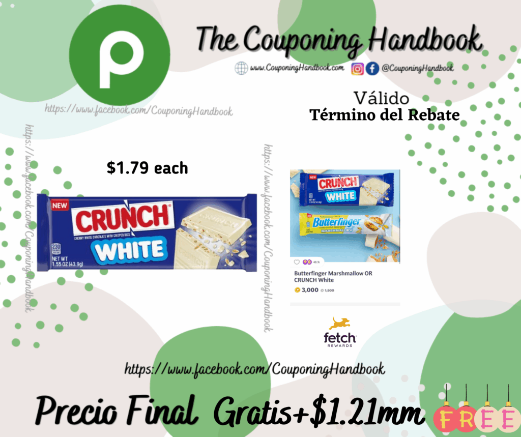 Toma 01 CRUNCH White Chocolate Bar with Crisped Rice ($1.79 each)..; pagaremos $1.79 por el producto.