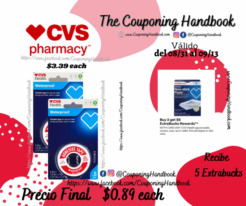 CVS Easy Tear Waterproof Adhesive Tape, .5in x 5yd por $0.89 por Mery Cardoso el septiembre 2, 2025 con No hay comentarios CVS Compra 02 CVS Easy Tear Waterproof Adhesive Tape, .5in x 5yd ($3.39 each)….; pagaremos $6.78 por el producto pero nos devolverán $5Extrabucks por comprar 02 productos, quedando la compra después de los extrabucks en $0.89 por cada producto. Comparte:FacebookTwitter