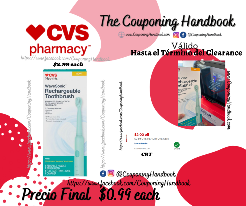 ✔️ 01 CVS Wave Sonic Rechargeable Toothbrush, Mint Green ($2.99 each)