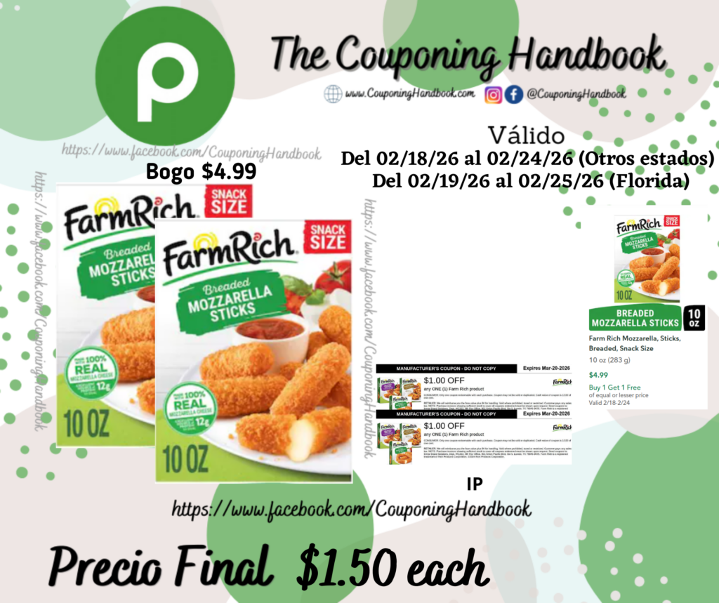 ✔️(02) $1/1 any Farm Rich product.….(IPel cual lo puedes imprimir en el siguiente enlace 👉👉👉👉 (FarmRich))
