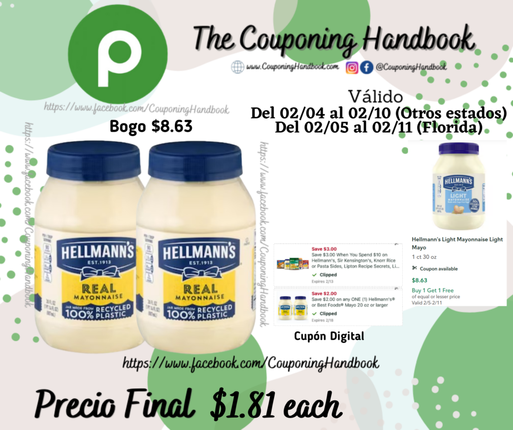 ✔️02 Hellmann’s Real Mayonnaise 30 oz (Bogo $8.63)