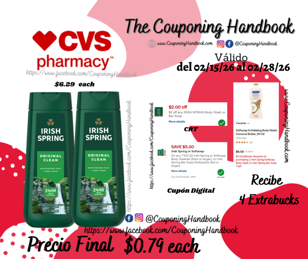 $4/2 any Irish Spring or Softsoap Body Washes (20oz or larger), or Irish Spring Bar Soap Multipacks…. (DQ)