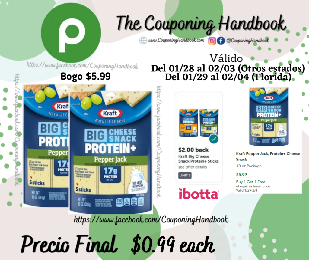 Compra 02 Kraft Mild Cheddar, Protein + Cheese Snack 10 oz Package (Bogo $5.99)….; pagarás $5.99 por ambos productos.