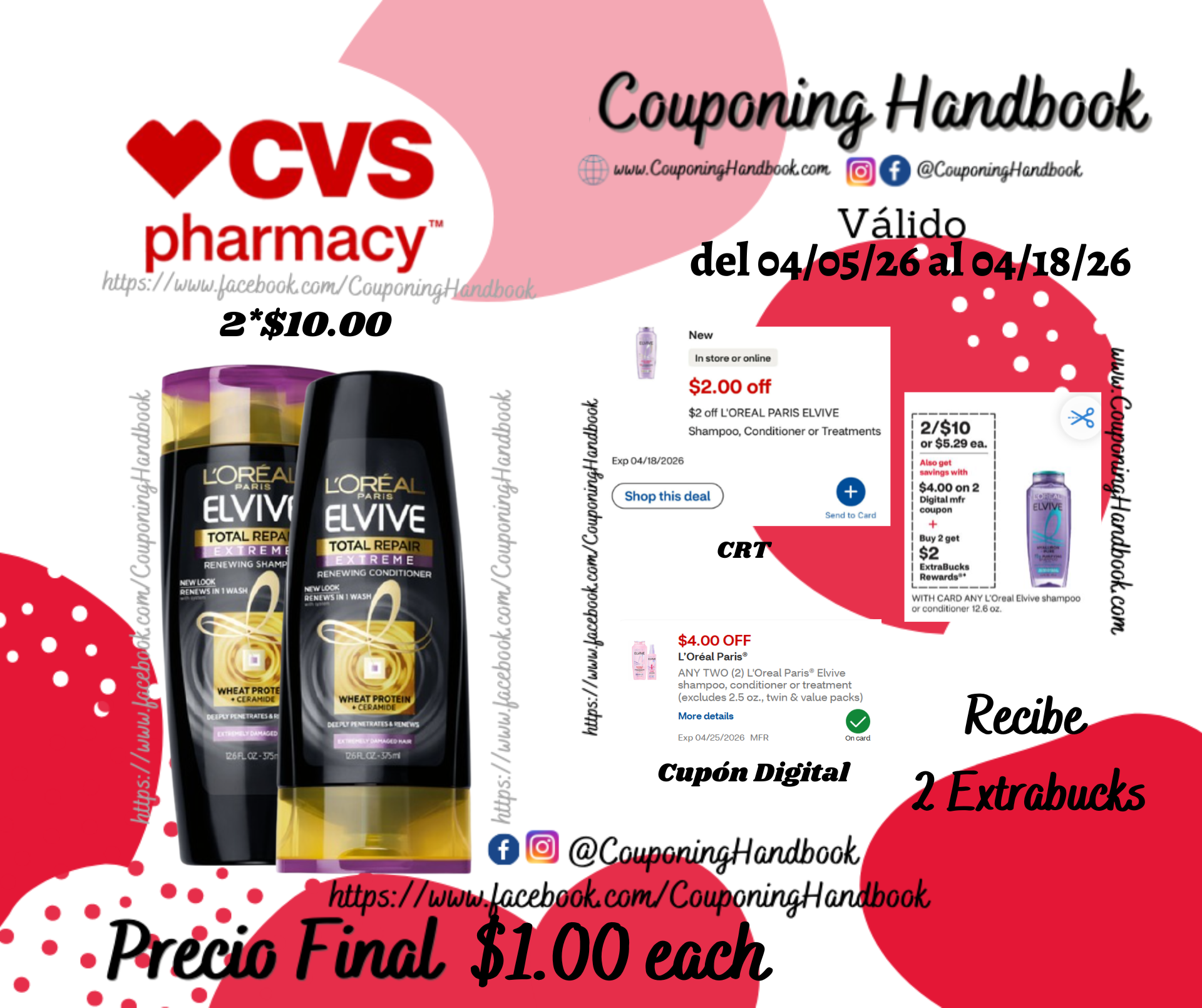 $4/2 any L’Oreal Paris® Elvive shampoo, conditioner or treatment…. (DQ)