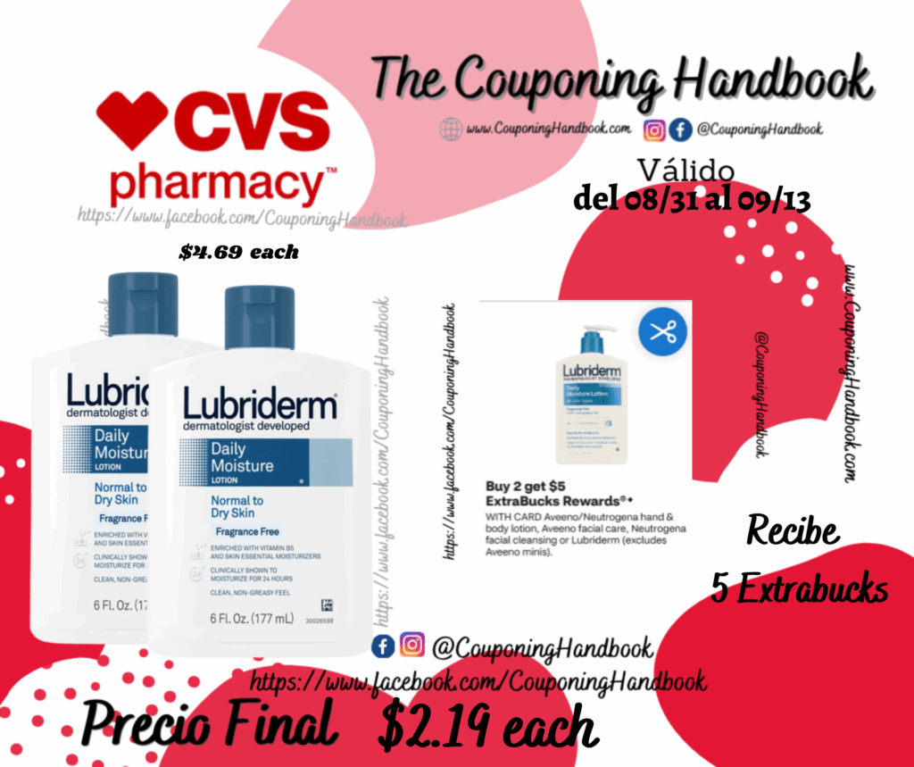 Lubriderm Daily Moisture Lotion, Fragrance-Free, 6 Ounces por $2.19 por Mery Cardoso el agosto 31, 2025 con No hay comentarios CVS Toma 02 Lubriderm Daily Moisture Lotion, Fragrance-Free, 6 Ounces ($4.69 each) ….; pagaremos $9.38 pero nos devolverán $5 extrabucks por comprar 02 productos, quedando la compra en $2.19 por cada producto. Comparte:FacebookTwitter