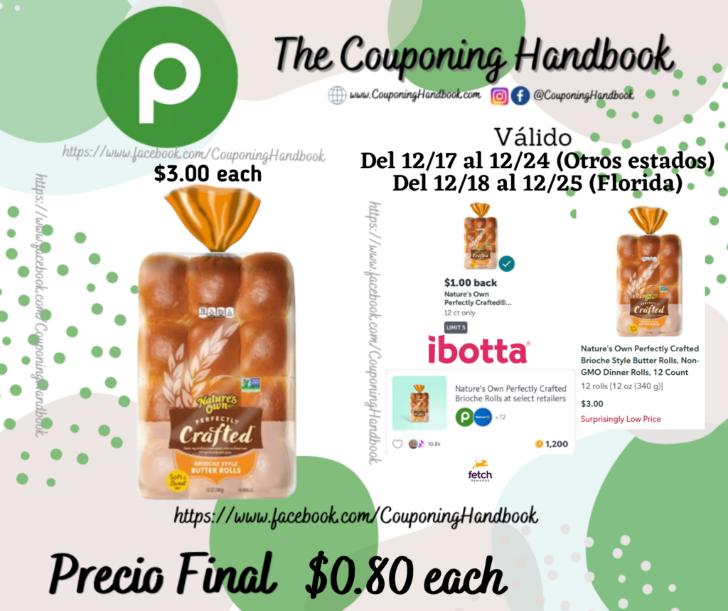 Compra 01 Nature’s Own Perfectly Crafted Brioche Style Butter Rolls, Non-GMO Dinner Rolls, 12 Count ($3.00 each)….; pagarás $3.00 por el producto.