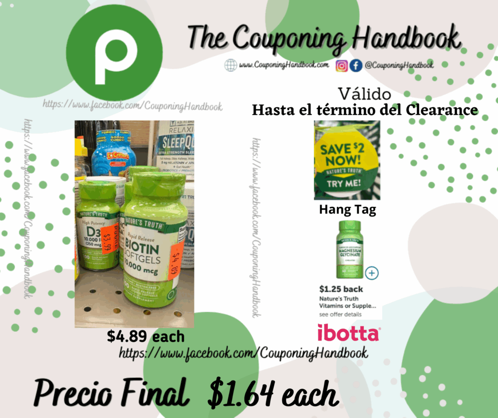 Compra 01 Nature’s Truth Biotin 10000 mcg ($4.89 each), entregamos 01 Hang Tag de $2/1 Nature’s Truth….(el cual se encuentra en el producto)..; pagarás $2.89 por el producto.