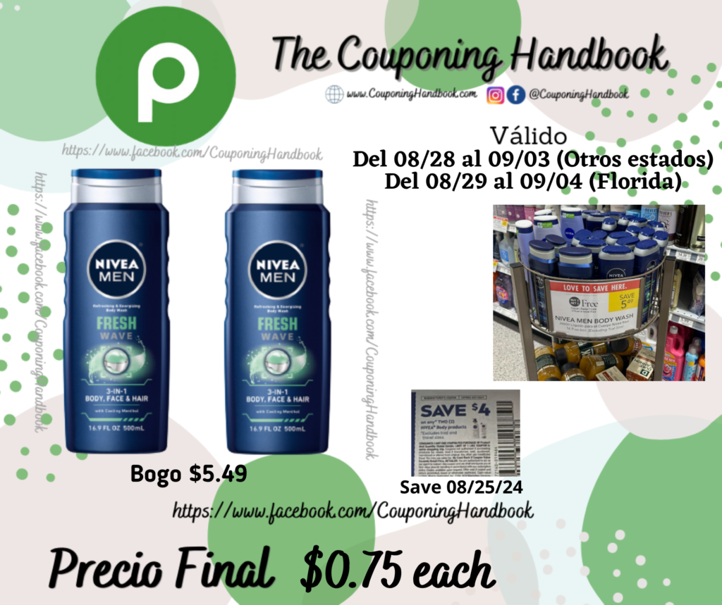 Nivea Men Men Body Wash por $0.75 por Mery Cardoso el agosto 30, 2024 con No hay comentarios Publix Compra 02 Nivea Men Men Body Wash (Bogo $5.49 each), entregamos un cupón del Save 08/25/24 de $4/2 any nivea body products….; Pagaremos $1.49 por ambos productos o $0.75 por cada uno. Comparte:FacebookTwitter