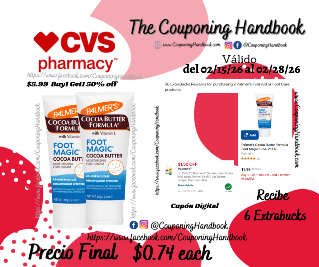 ✔️ 02 Palmer’s Cocoa Butter Formula Foot Magic Tube, 2.1 OZ ($5.99 Buy1 Get1 50% off)
