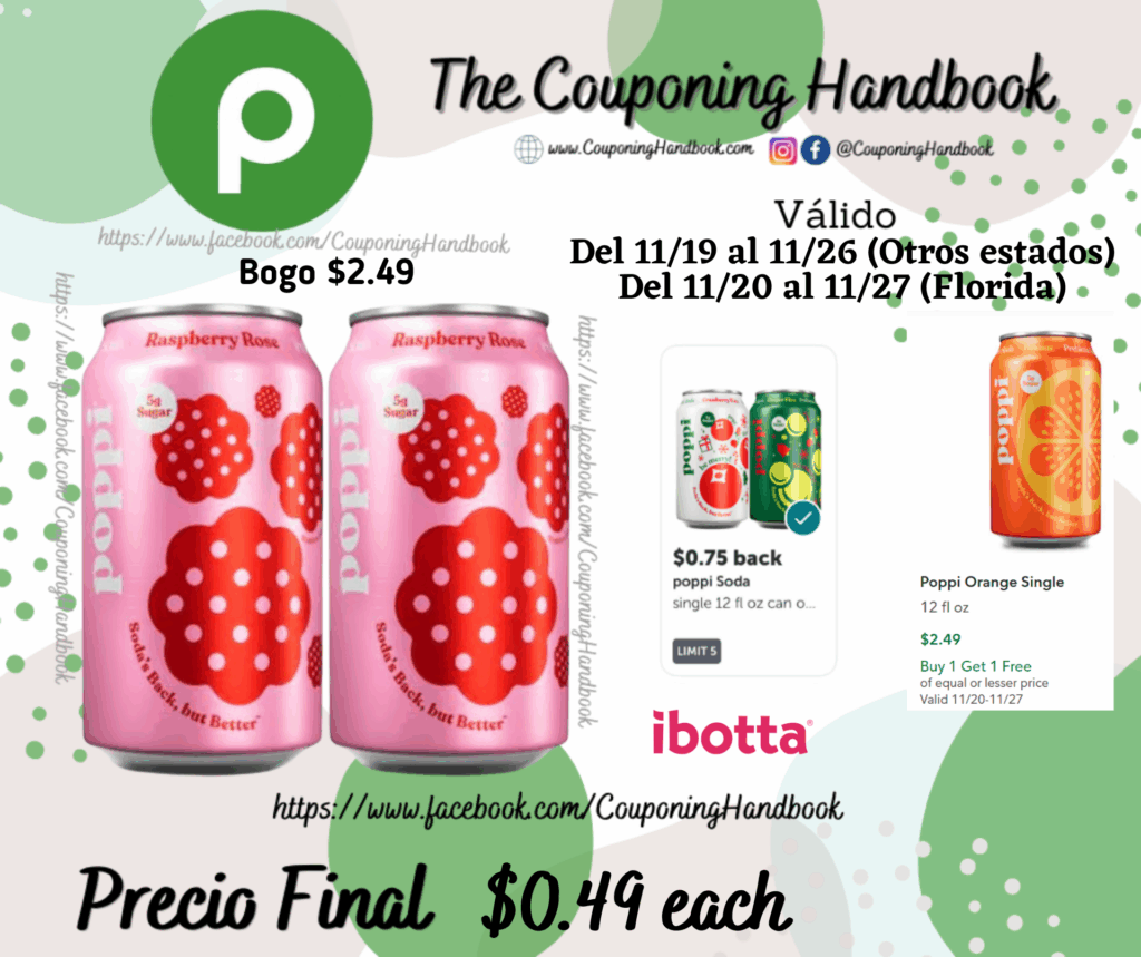 Compra 02 Poppi Raspberry Rose Single 12 fl oz (Bogo $2.49)….; pagarás $2.49 por ambos productos.