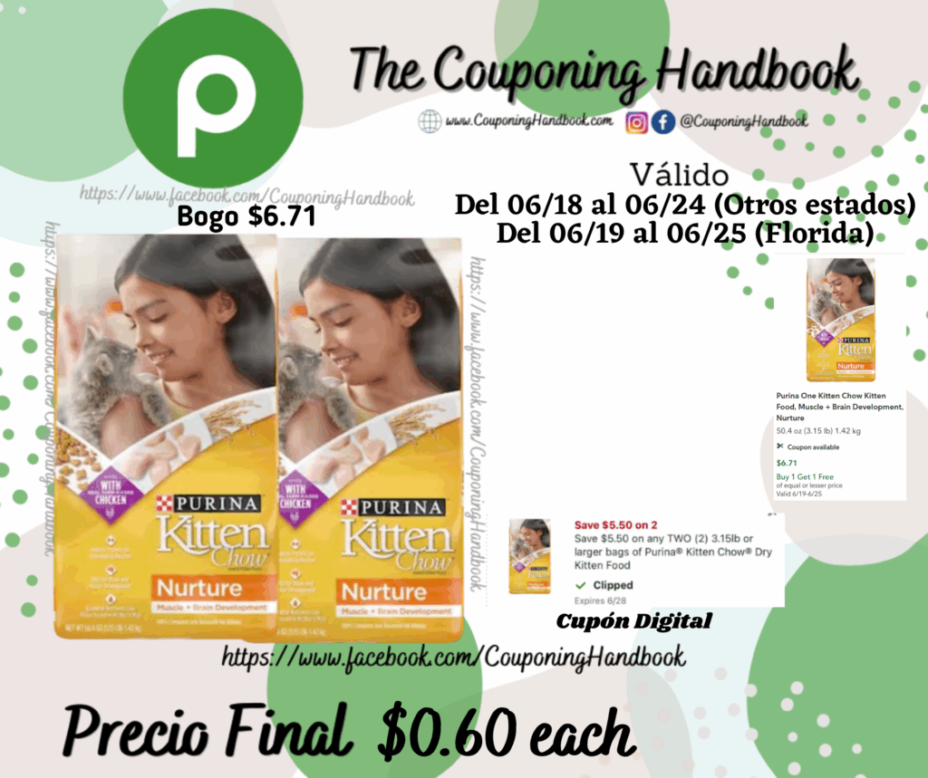 Purina One Kitten Chow Kitten Food, Muscle + Brain Development, Nurture por $0.60 por Mery Cardoso el junio 19, 2025 con No hay comentarios Publix Compra 02 Purina One Kitten Chow Kitten Food, Muscle + Brain Development, Nurture (Bogo $6.71), clipeamos el cupón digital de $5.50/2 any 3.15lb or larger bags of Purina® Kitten Chow® Dry Kitten Food…..; pagarás $0.60 por cada producto. Comparte:FacebookTwitter