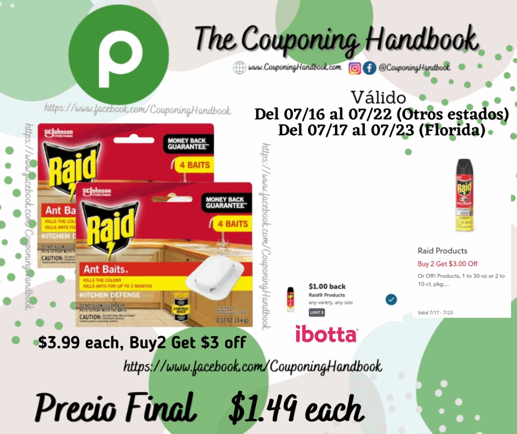 Toma 02 Raid Ant Baits Indoor Ant Killer – 0.12oz/4ct ($3.99 each, Buy2 Get $3 off), adicionalmente la tienda te descontará automáticamente $3 off por comprar 02 productos: pagarás $4.98 por los 2 productos.