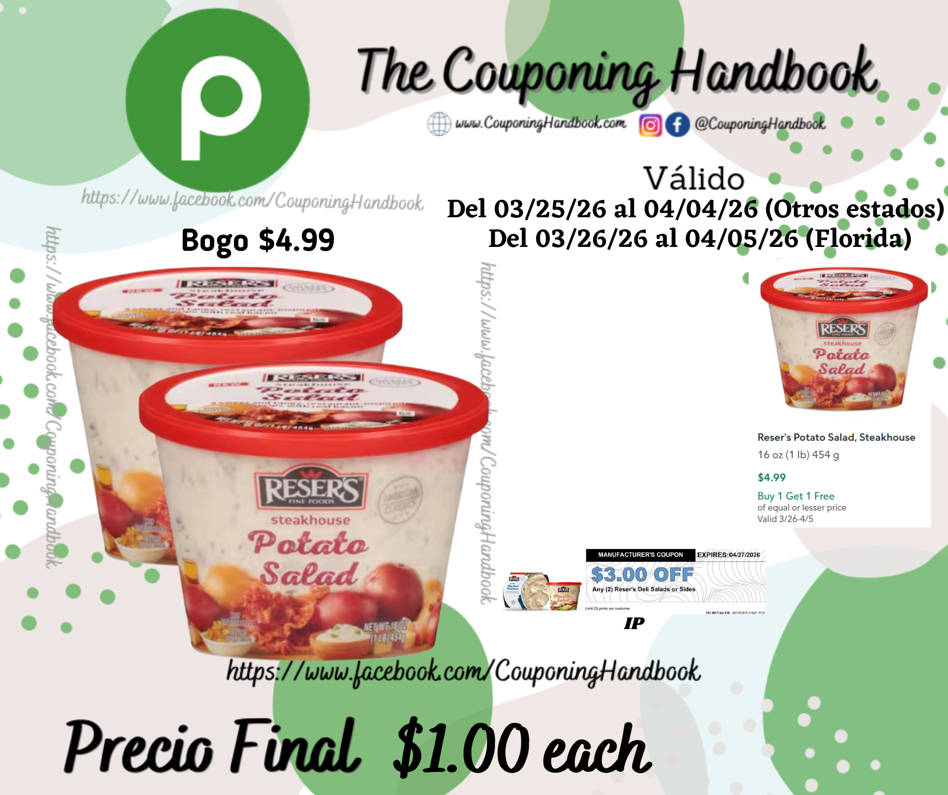 $3/2 any Reser’s Deli Salads or side.….((IP, el cual lo puedes imprimir en el siguiente enlace