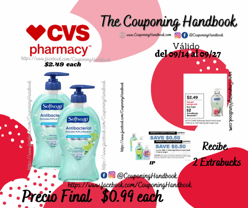 Compra 02 Softsoap Antibacterial Liquid Hand Soap Pump, 11.25 OZ ($2.49 each), entregamos 02 IP de $0.50/1 any softsoap brand liquid hand soap…., el cual lo puedes imprimir en el siguiente enlace