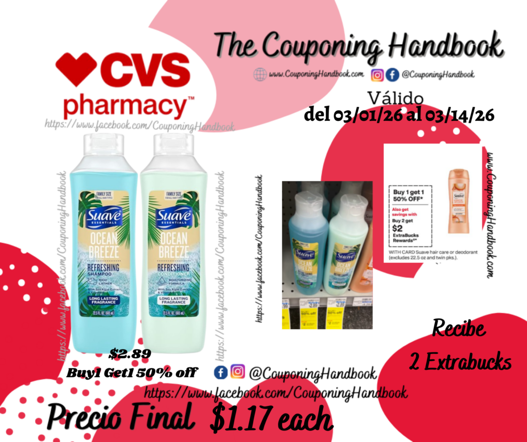 ✔️02 Suave Ocean Breeze Shampoo or Conditioner ($2.89 Buy1 Get1 50% off)
