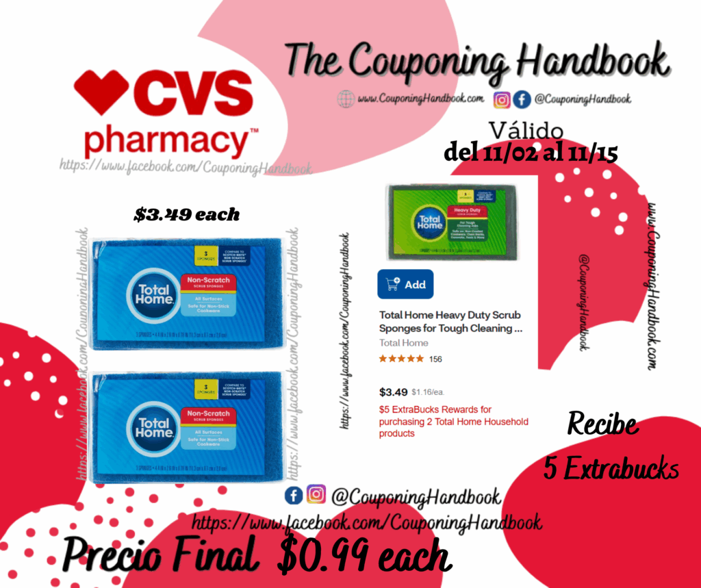 Total Home Non-Scratch Scrub Sponges, 3 CT por $0.99 por Mery Cardoso el noviembre 3, 2025 con No hay comentarios CVS Toma 02 Total Home Non-Scratch Scrub Sponges, 3 CT ($3.49 each)....; Pagaremos $6.98 por los 02 productos pero nos devolverán $5 Extrabucks, quedándonos la compra después de los extrabucks en $0.99 por cada producto. Comparte:FacebookTwitter